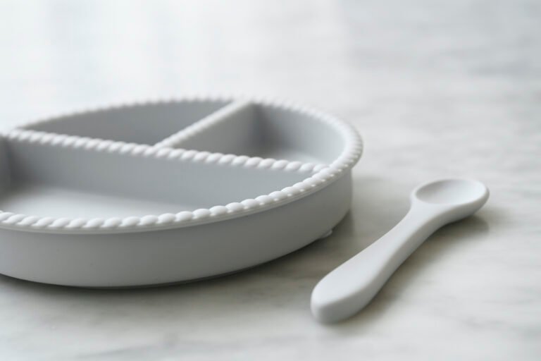 Silikoninė trijų skyrių lėkštė su šaukšteliu, Grey