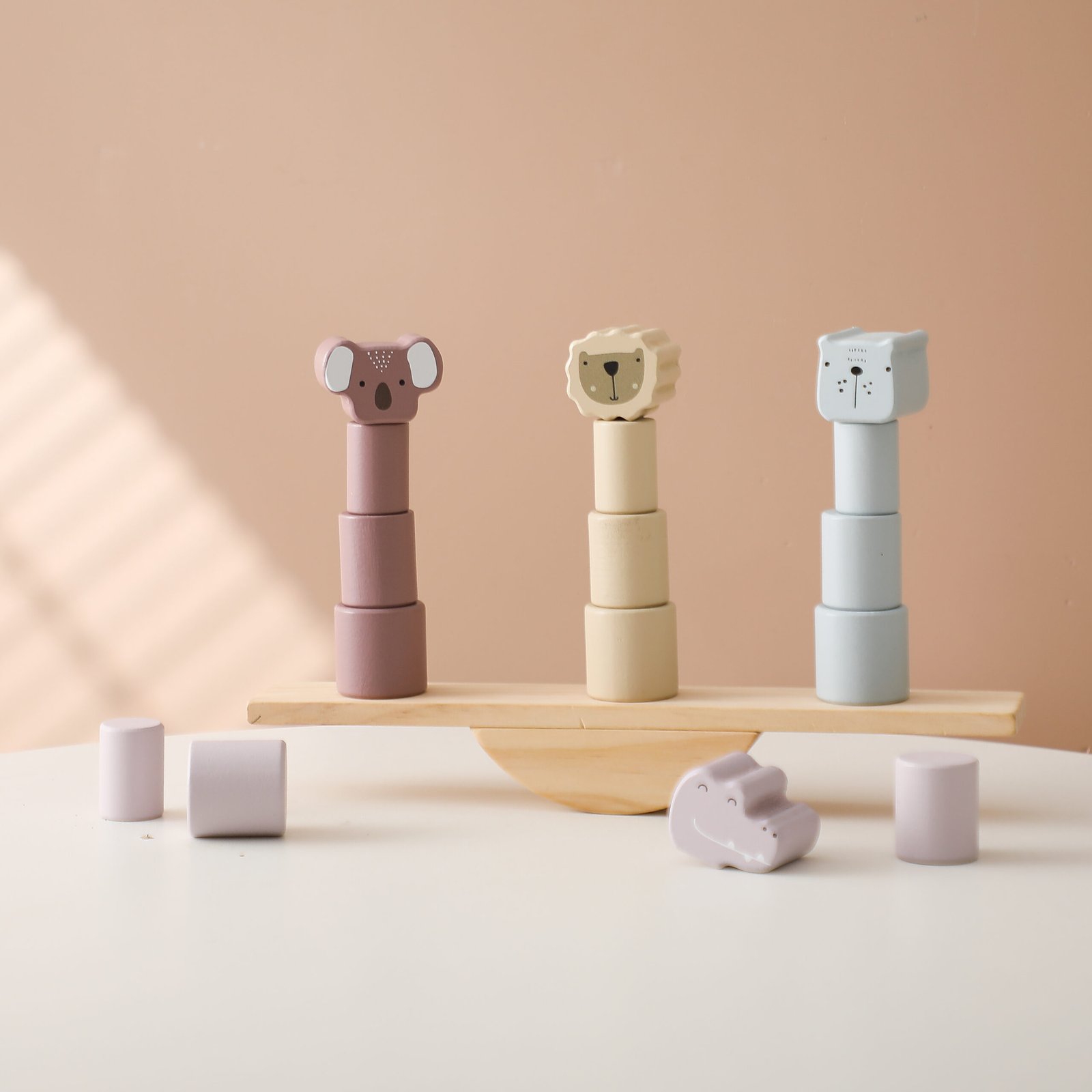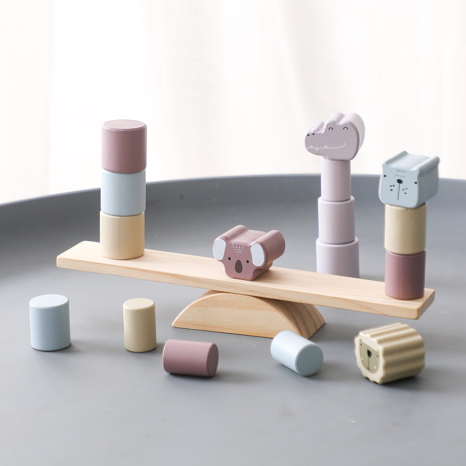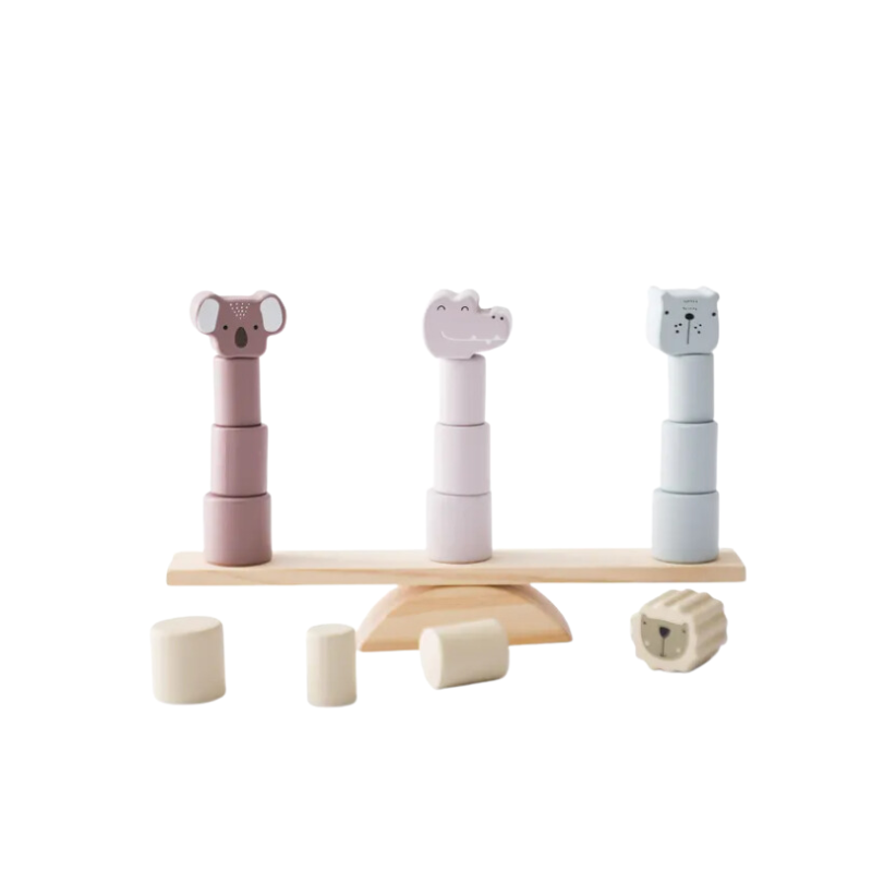 Švelnių pastelinių spalvų kaladėlės ant balansuojančių supynių su keturiais skirtingais gyvūnais taps tikras kantrybės išbandymas jūsų mažiesiems! Šio žaidimo pagalba jūsų vaikas lavins smulkiosios motorikos įgūdžius, mokysis balansavimo, tyrinės, gerins rankų ir akių koordinaciją, lavins loginį mąstymą, vaizduotę, kūrybiškumą ir svarbiausia – ugdys kantrybę.