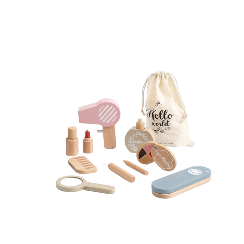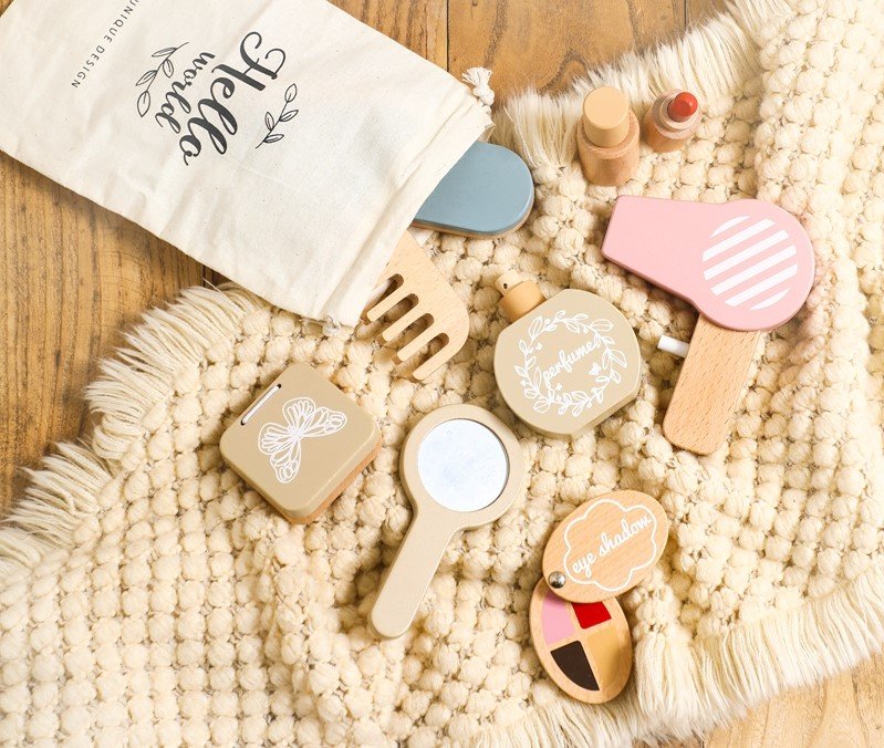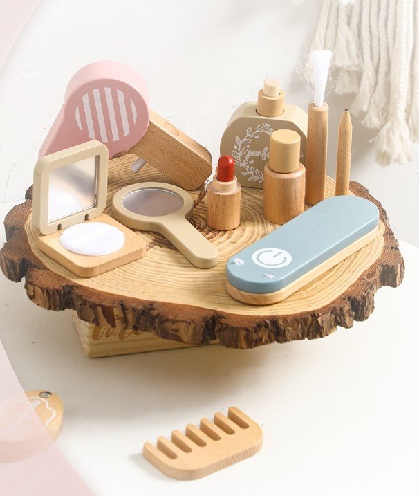 Skirta vaikams nuo 3 metų amžiaus. Mediniame grožio reikmenų rinkinyje rasite pagrindines kasdienėje rutinoje naudojamas kosmetikos ir plaukų reikmenų priemones. Žaidimo pagalba jūsų vaikas susipažins su skirtingomis grožio reikmenų priemonėmis, lavins kūrybiškumą bei smulkiąją motoriką.