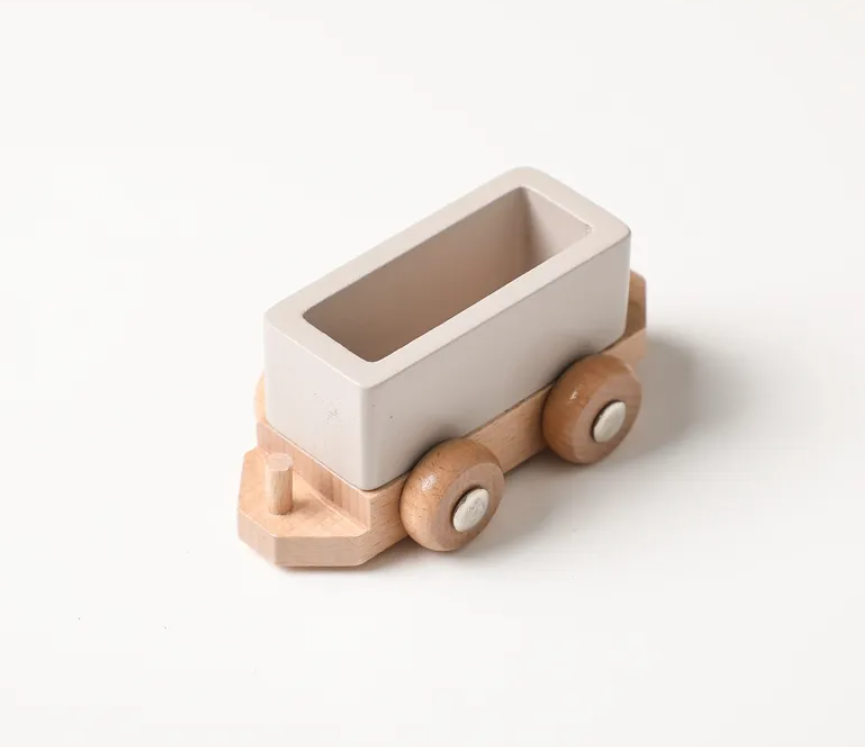 Medinis traukinukas–dėlionė yra smagus, mielų pastelinių spalvų žaidimas, kuris lavina vaiko vaizduotę, skatina kūrybiškumą, moko skirtingų figūrų ir skaičių, skatina smulkiosios motorikos vystymą ir pojūčių tyrinėjimą, lavina kognityvinius įgūdžius. Taip pat tai puiki dovana vaikui nuo 1 iki 5 metų.