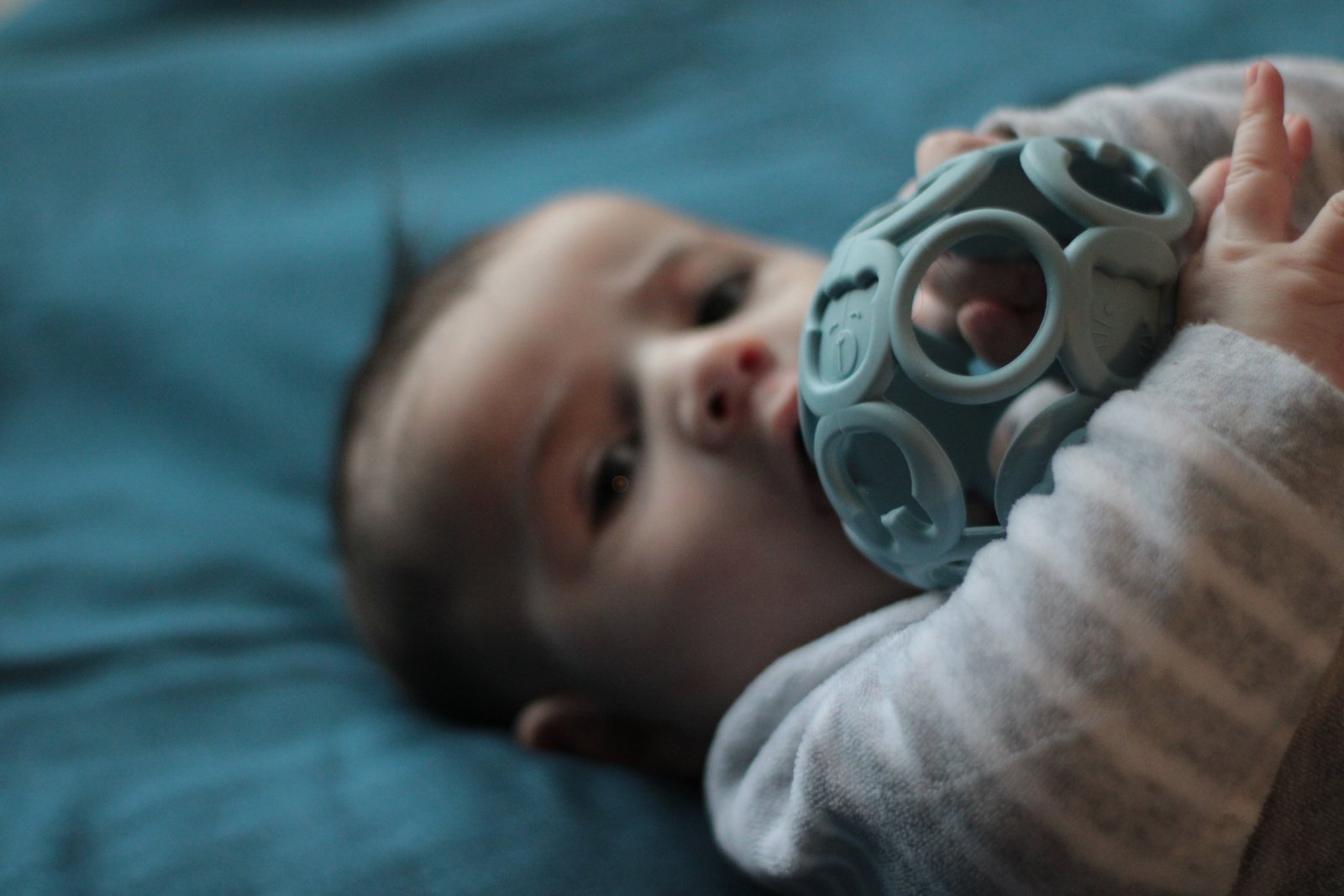 Skirta kūdikiams nuo 3 mėnesių amžiaus. Šis silikoninis rutulys yra puiki pagalbinė priemonė dygstantiems dantukams bei motorinių įgūdžių lavinimui.